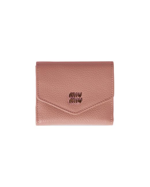 Snap closure Metal lettering logo One bill compartment Four card slots Two internal pockets Internal coin pocket with flap One external pocket Moiré lining Imported 100% Calf Leather 3.9 W x 3.3 H in. Lsd Handbags - Miu Miu > Miu Miu > Saks Fifth Avenue. Miu Miu. Color: Pink Gold.