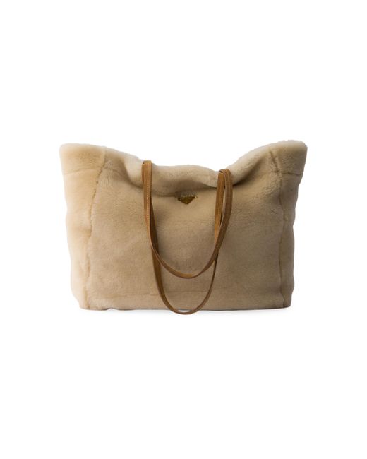 Suede handles Detachable leather key ring Metal hardware Enameled metal triangle logo on the front Unlined interior with zipper pocket Fur Type: Sheep Fur Origin: Portugal Fur Treatment: Dyed 100% Ovis Aries Aries 35 cm W x 30 cm H x 13 cm L / 13.8'' W x 11.8'' H x 5.1'' L Imported. Lsd Handbags - Prada Handbags Access > Prada > Saks Fifth Avenue. Prada. Color: Beige Khaki.