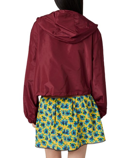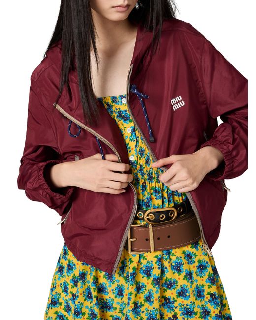 Unlined Hooded collar Long sleeves Elasticized cuffs Zipper closure Zipper pockets Rubber logo Drawstring hem 100% Polyester Imported. Lsd Handbags - Miu Miu > Miu Miu > Saks Fifth Avenue. Miu Miu. Color: Dark Red. Size: 4.
