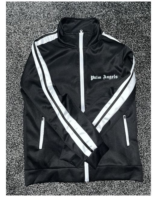 The Palm Angels Men's Tracksuit is a stylish and comfortable 2-piece set made from polyester material. The long-sleeve track jacket features a zip closure, striped pattern, and an angel character design, perfect for an occasion like activewear. The track pants included in the set have a regular fit and come in a classic black colour with the brand's logo accents. This tracksuit is machine washable and unsuited for personalisation. Ideal for men looking for a trendy yet practical track jacket and pants for the summer season.