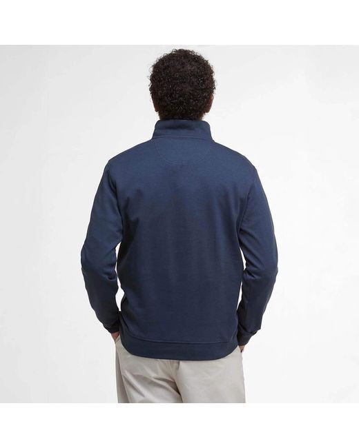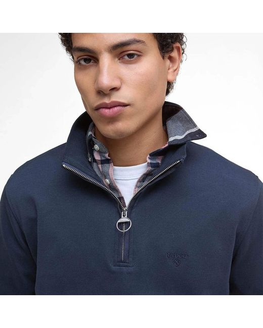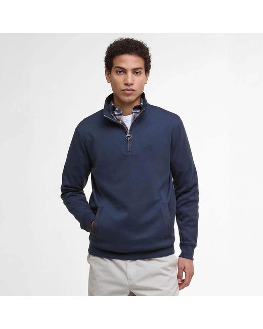 Barbour Lambeth Interlock Half Zip Sweatshirt Navy The Barbour Lambeth Interlock Half Zip Sweatshirt Navy is made from a soft cotton blend with a smooth interlock finish. It features a half zip collar, signature tartan trim at the back neck, and Alcantara tape for subtle detailing.