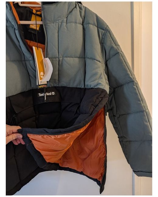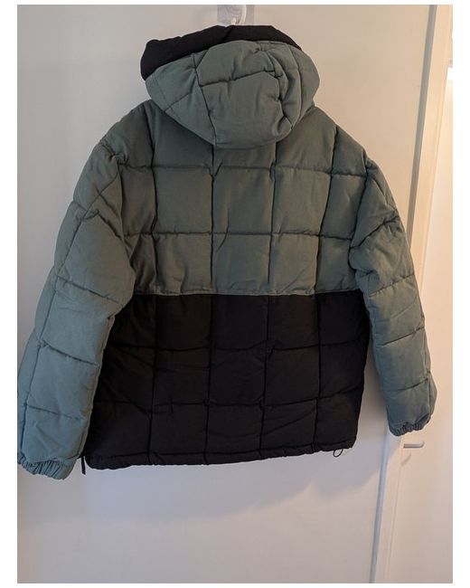 Design: This is a pullover-style anorak with a half-zip closure and a front utility pocket. Materials: It is crafted from 100% organically grown cotton and uses 100% recycled polyester insulation for warmth. Protection: The fabric has a durable water-repellent (DWR) finish to help resist moisture. Fit & Comfort: It features a standing neckline with an attached hood, adjustable hem and cuffs, and a regular fit.