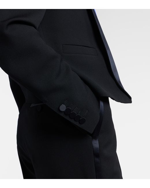 Material: 100% wool. Care instructions: dry clean. Made in Italy. Designer color name: Black & Deep Blue Navy.. Lining: 59% cupro, 41% silk. Details: 100% silk. Shawl lapel. Pockets: welt pockets. Cuff: buttoned. Wool.