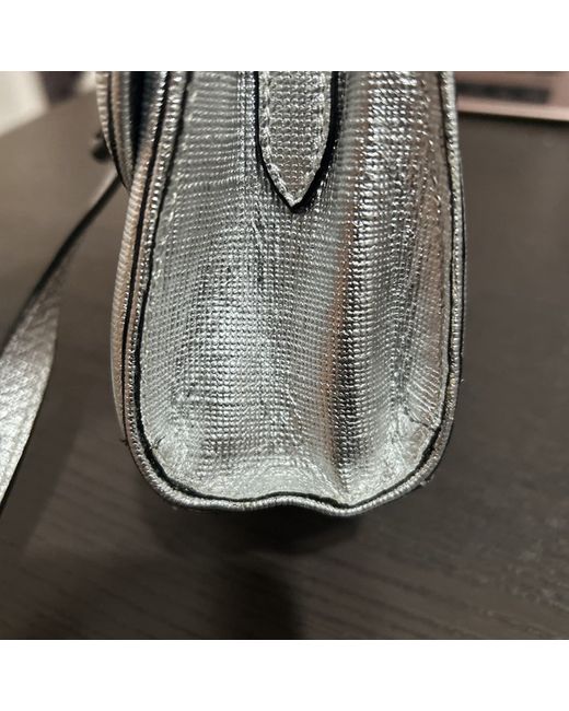 Dries Van Norton Small Shoulder Bag in elegant Silver Leather. 100% Leather. Magnetic snap closure. Note : Slight Glue marks inside near seams, And a slight twist in the handle while being stored, and curved at the bottom also stitching marks are the side which are accustomed to handcrafted items. There a little mark on the bottom. But please note this item is authentic and new. See pictures.
