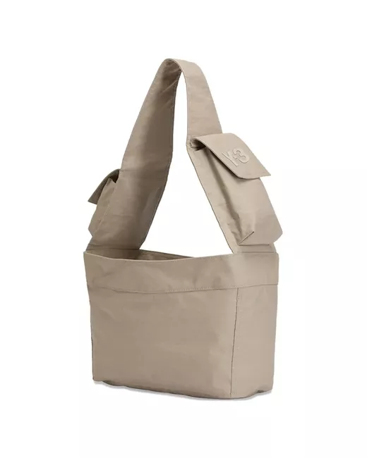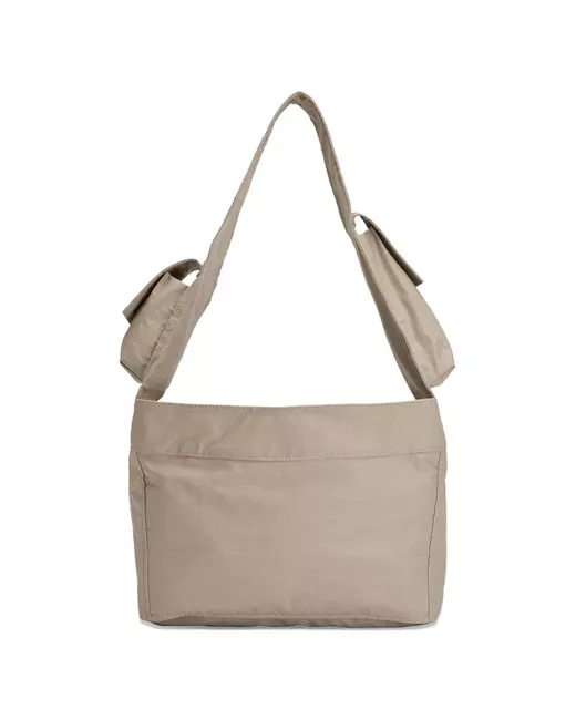 light brown single shoulder strap flap pockets top handle main compartment logo detail
