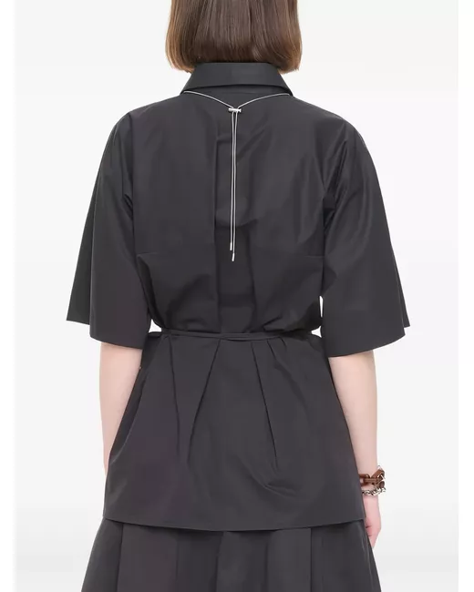 nero colletto a punta chiusura frontale con bottoni maniche corte cintura taschino sul petto