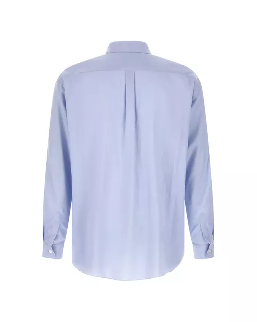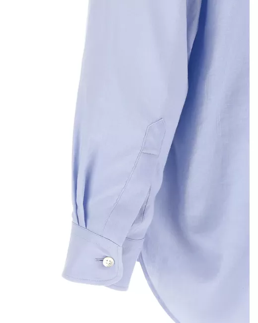light blue classic collar breast pocket button closure long sleeves rounded hem