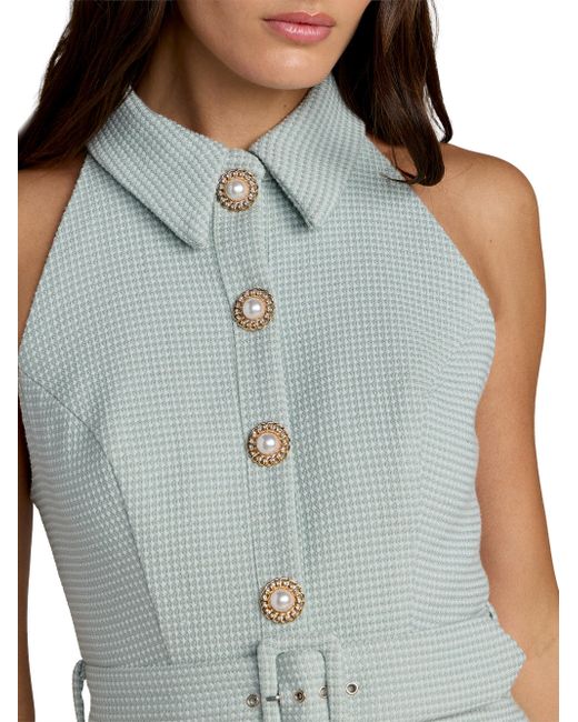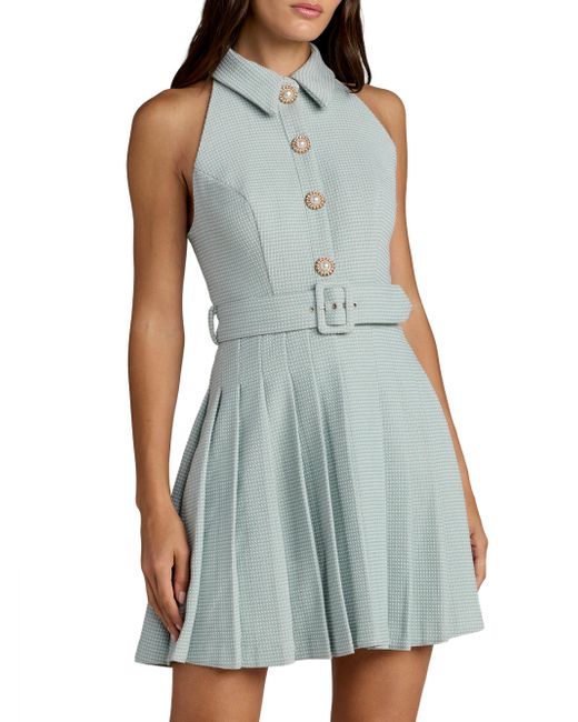 Crafted of bouclé, this Mac Duggal minidress is designed with a spread collar, belted waist, and pleated skirt. Spread collar Sleeveless Belted Back zip closure 100% polyester Lining: 100% polyester Spot clean Imported SIZE & FIT About 35" from shoulder to hem Model measurements: 5'10" tall Model is wearing a US size 4 Please note: This Mac Duggal style includes an attached sash located inside the garment. If the sash is removed, this style cannot be returned. ABOUT THE BRAND Mac Duggal's first eveningwear hit, in the mid-1980s, was an A-line dress crafted from tulle with handpainted stars decorated its lining. Since then, the label has become an eveningwear go-to and Hollywood favorite. Nicknamed the "king of bling," the eponymous designer uses sophisticated ornamentation and eye-catching fabrics as a nod to his Indian heritage. Dress Collections - Mac Duggal > Mac Duggal > Saks Fifth Avenue. Mac Duggal. Color: Sage. Size: 2.