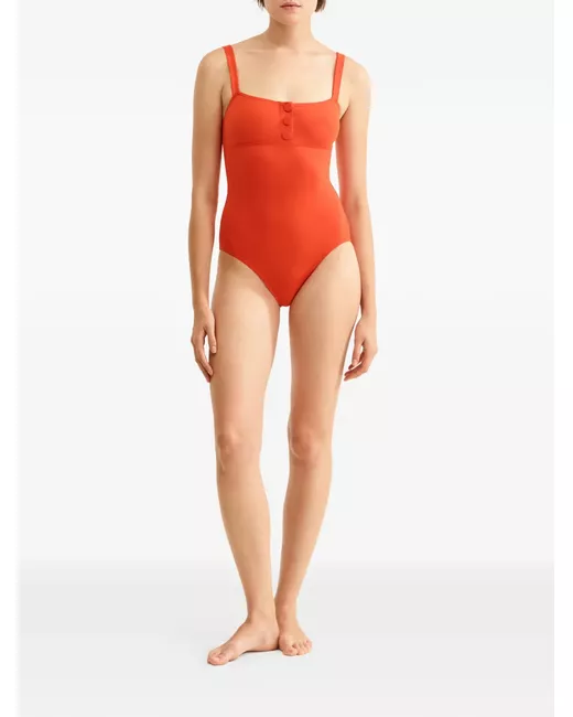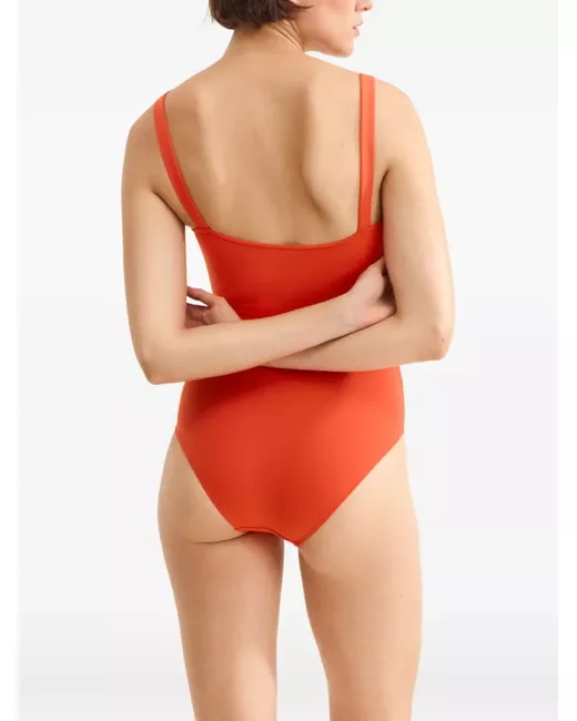 orange square neck shoulder straps Be mindful to try on swimwear over your own garments.
