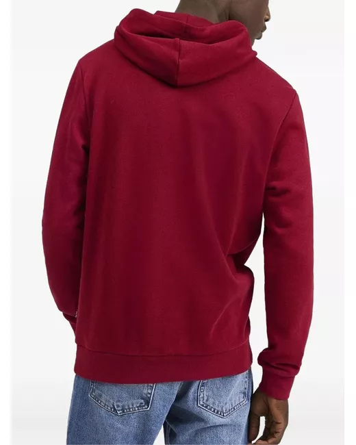 red logo drawstring hood long sleeves kangaroo pocket ribbed hem