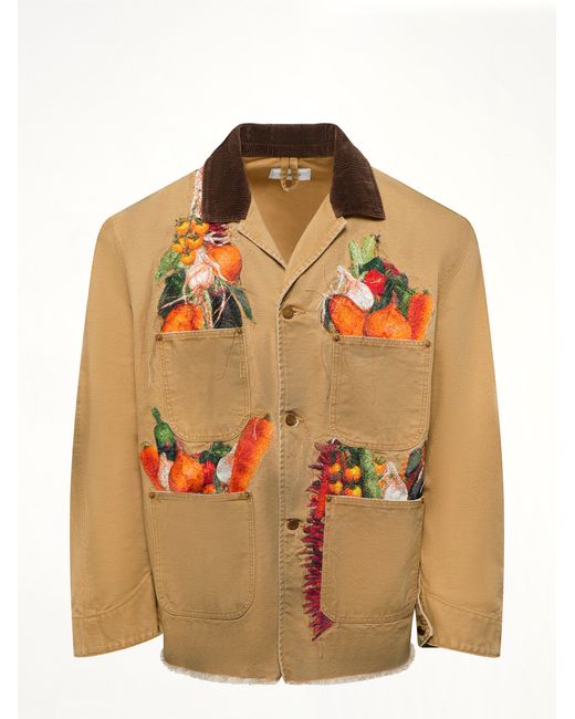 Doublet's Vegetable Embroidery Work Jacket in Beige is a unique blend of artistry and fashion, featuring intricate embroidery that adds a touch of nature-inspired elegance. This jacket is perfect for those who appreciate detailed craftsmanship and a distinctive style. Composition: - Intricate vegetable-themed embroidery Beige color for versatile styling Relaxed fit for comfortable wear Button closure for easy layering Multiple pockets for practicality Made in - Model is 187 cm and wears size M SKU: 26SS19BL249