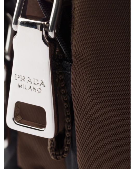 Enameled metal triangle logo Zipper closure 100% Polyamide - 100% Calf Leather - 100% Solventfree Resin Pu 22 cm W x 14 cm H x 6.5 cm L / 8.7'' W x 5.5'' H x 2.6'' L Imported. Lsd Rtw - Prada Rtw > Prada > Saks Fifth Avenue. Prada. Color: Brown.