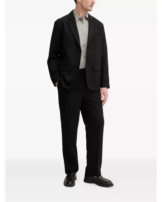 black buttoned front flap pockets notched lapels single-breasted long sleeves