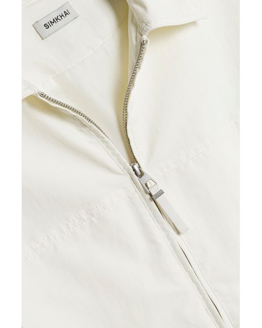 SPRING 2026 WOMEN'S COLLECTION The Colsen Cropped Jacket in White. Cut from a crisp cotton, this cropped jacket has a boxy, relaxed silhouette, defined by tonal seams and gentle volume through the hem for a flattering, structured look. SIMKHAI Women's Colsen Cropped Jacket in White, Cotton, Size XS