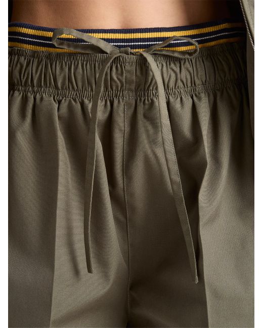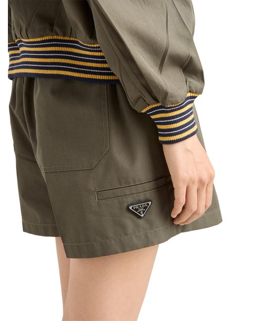 Menswear fit Unlined garment Enameled metal triangle logo Angled front slash pockets Back patch pockets Ribbed knit waistband with drawstring 35% Cotton, 65% Polyester Imported. Lsd Rtw - Prada Rtw > Prada > Saks Fifth Avenue. Prada. Color: Green. Size: 0.