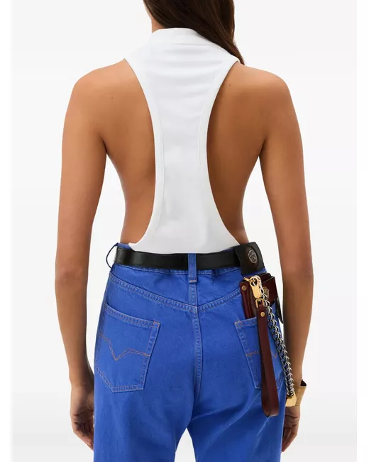 Top in jersey di cotone compatto con scollo a V a coste, dettagli cut-out e un piccolo ricamo con Versace Logo e Medusa sul petto. ricamo Versace Logo ricamo Medusa senza maniche scollo a V orli a coste composizione esterna: 96% cotone, 4% elastam ricamo: 100% poliestere rifinitura: 98% cotone, 2% elastam Altezza modello/a: 1,77 cm. Taglia indossata: 38 IT