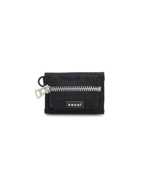 This trifold wallet from Sacai features a tactile design with an exterior zip pocket and various interior compartments. Exterior: one zip pocket Interior: two slip, one flap, and one money pocket Snap closure 100% polyester Front pocket: 100% nylone Lining: 100% nylone Logo label: Rubber Spot clean Made in Japan SIZE About 4.25"W x 3"H. Men Accessories - Designer Accessories > Sacai > Saks Fifth Avenue. Sacai. Color: Black.