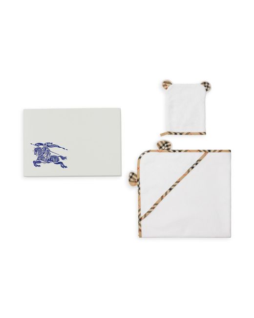 Crafted of a cotton blend, this two-piece baby gift set from Burberry features a towel and hat with cute bear ear detailing and Heritage Check trim. Includes one towel and one hat 85% cotton/15% polyester Trim: 100% cotton Machine wash Imported ABOUT THE BRAND Founded in 1856 by 21-year-old Thomas Burberry, the brand set out with a mission to stylishly protect against British weather-and Burberry's iconic trench coat was born. In the 1920s, its renowned check pattern was introduced as the coat's lining. Today, under Creative Director Daniel Lee, the heritage brand continues to evolve and create timelessly classic men's, women's and kids' pieces, along with beauty. Children's Wear - Burberry Kids > Burberry > Saks Fifth Avenue. Burberry. Color: White.