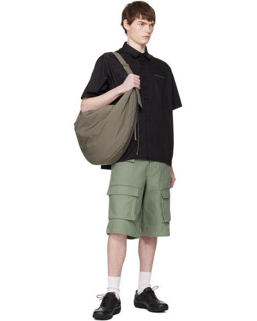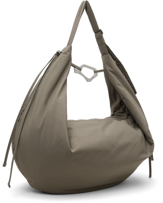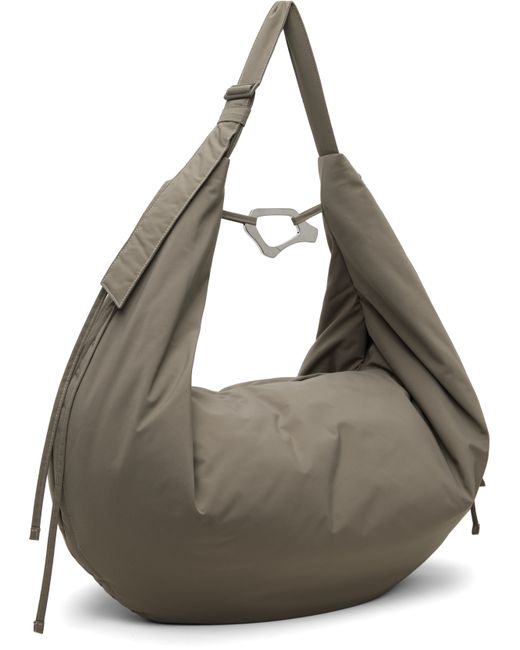 Padded taffeta messenger bag. · Adjustable crossbody strap · Carabiner at strap · Logo printed at face · Drawstring at sides · Zip closure · Zip pocket at interior · Logo-woven twill lining · Logo-engraved hardware · H15 x W24 x D2 Supplier color: Light Dusty Green