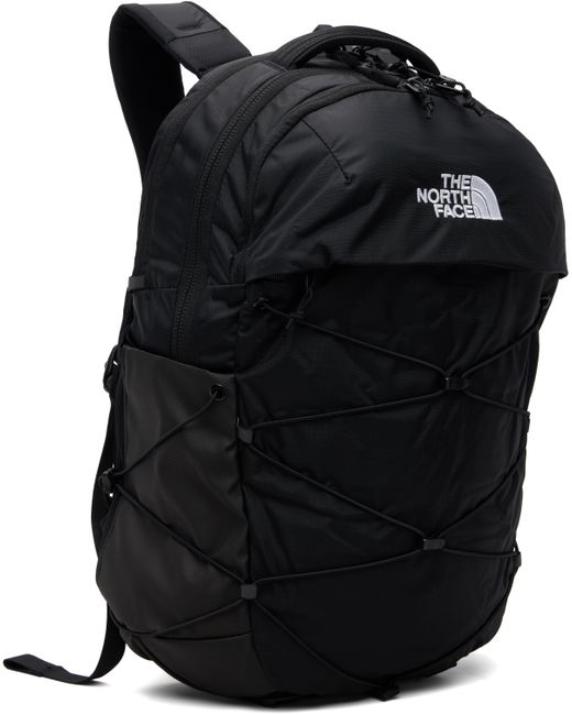 Coated nylon ripstop backpack. · Reflective trim throughout · Water-repellent, non-PFC DWR coated · FlexVent™ suspension system · Fixed carry handle · Adjustable padded shoulder straps · Waist belt and sternum strap with whistle · Logos, bungee drawstring, and zip pocket at face · Bungee drawstring and patch pocket at sides · Padded faille back face · Cinch straps at base · Two-way zip closure at main compartment · Laptop compartment and pockets at interior · H11 x W6.75 x D17.25 / 27 L Supplier color: TNF black/TNF white