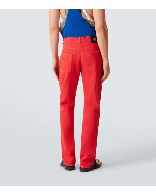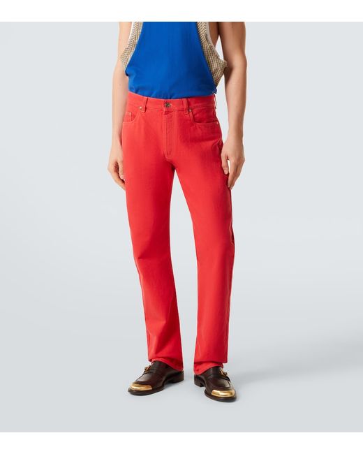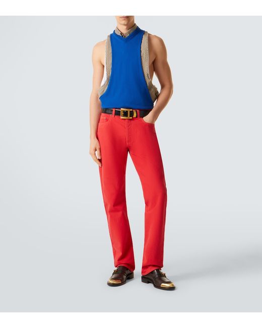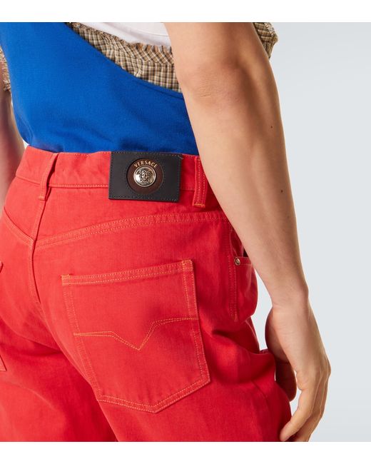 Materiale: 100% cotone. Trattamento: lavaggio in lavatrice a 30°. Made in Italy. Colore del designer: Red. Dettagli: 100% pelle di vitello. Chiusura: abbottonatura nascosta. Passanti per cintura. Tasche: cinque tasche. Cotone.