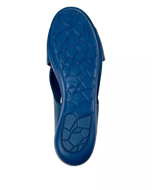 navy blue smooth finish criss cross strap elasticated slingback strap leather sole platform sole