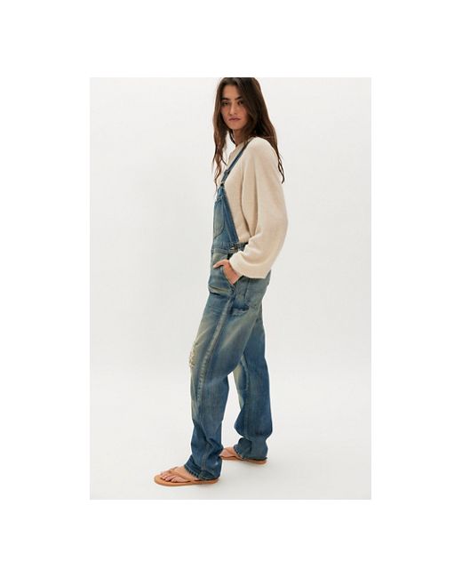 Slim, straight legs give a modern update to this classic pair of denim overalls from Lee. Featured in wash you can only find here at FP! **Fit:** More tapered legs, relaxed throughout **Feel:** Distressed rigid denim **Features:** Classic bib style, adjustable straps, buttons at hips, hammer loop, chest, back, and side pockets Lee Slim Straight Overalls at Free People in Sensory Overload, Size: XS