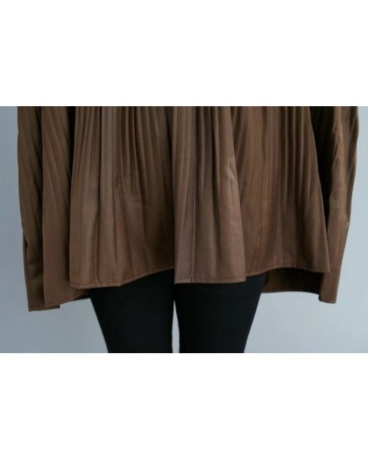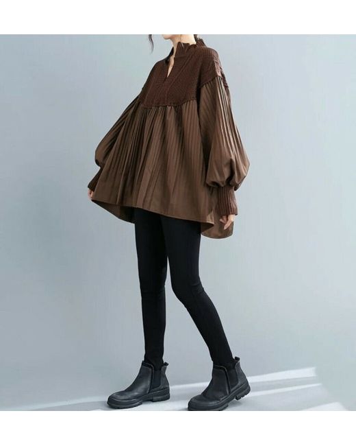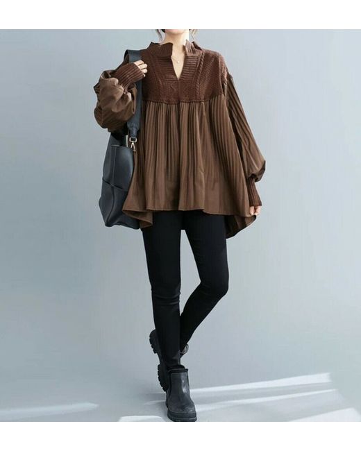 Elevate your wardrobe with this timeless classic blouse from Liberty-lane. The collarless neckline and pleated detailing on the cotton blend fabric give it a unique and unusual touch. This relaxed and comfortable blouse can be worn for any occasion, including travel, party, casual, formal, workwear, and business. The long sleeves and knit fabric make it ideal for all seasons, while the brown colour adds a touch of sophistication. With a relaxed fit and size, this blouse is perfect for any woman who wants to add a designer and timeless chic classic piece to her collection. This blouse is easy to care for with a low cool cold wash.
