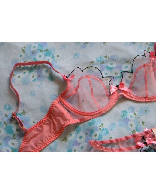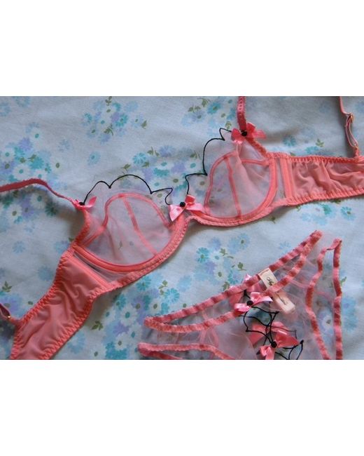 Agent Provocateur. (NB : Agent Provocateur Bras are on the small side). Sheer Bra and Ouvert Brief Set. With the Original Matching Ouvert Briefs : Size 2. The Bra has been well washed for freshness. MID to LIGHT PINK.