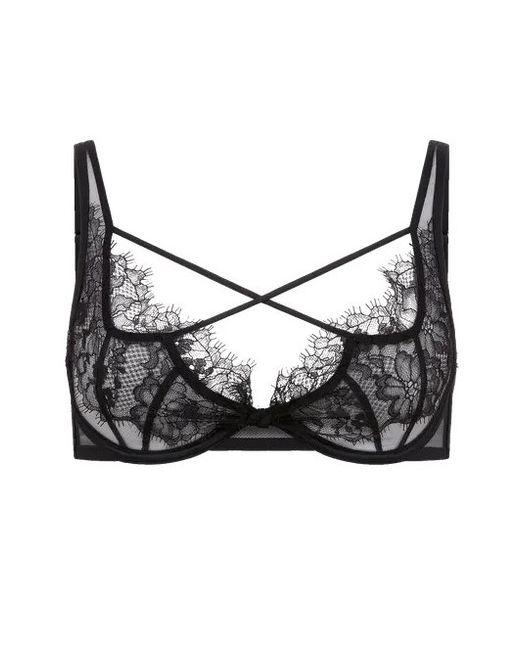 This is a gorgeous AGENT PROVOCATEUR RARE SOLD OUT BLACK PALMA Bra in size 34C . Channel power and poise with Palma. Black elastic criss-cross across cleavage.