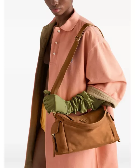 The Explore bag, a perfect synthesis of sophistication and functionality, has a soft, multi-pocket silhouette. Nappa leather enhances the versatile, roomy design completed with refined and iconic details that reflect Prada's artisan tradition. nappa leather handle detachable, adjustable logo-print woven tape shoulder strap flapped side pockets with buckle ​ metal hardware ​ enameled metal triangle logo on the front ​ zipper closure ​ logo-print nylon lining with patch pocket