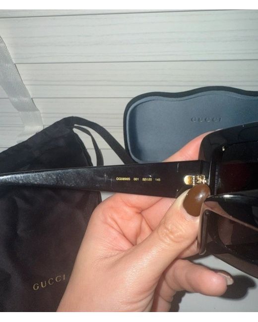 These Gucci Women's Sunglasses are a stylish and luxurious addition to any wardrobe. With square lenses and a black plastic frame, they exude designer elegance. Featuring UV400 protection and tinted lenses, these sunglasses are both fashionable and practical for sunny days. The Gucci brand name ensures a touch of Italian sophistication, making them a must-have accessory for women who appreciate high-quality eyewear with a touch of chic style. Please note these are 100% authentic and hardly any signs of wear. Comes with box & bag