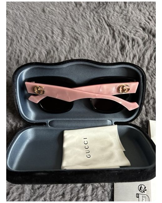 Brand new brown lens marble pink arms with doubleGG logo . Comes with guarantee plastic wrapping cleaning cloth case and Gucci black pouch to keep the case in . Never worn, never tried on.