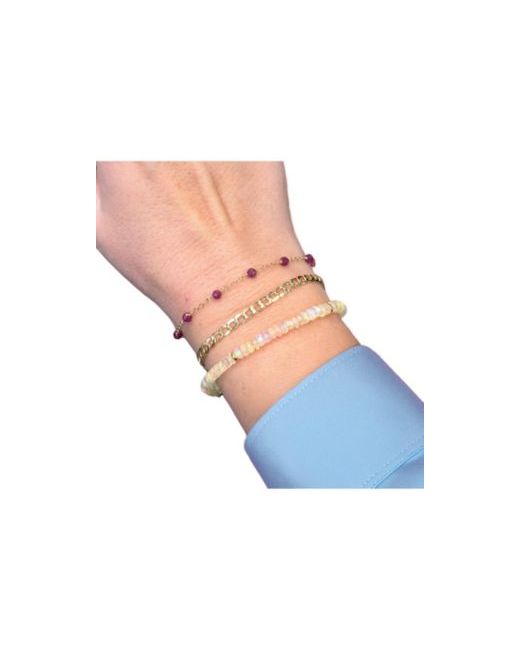 The Lovery Ethiopian Opal Beaded Bracelet is in 14K Yellow Gold. The beads measure approximately 3.5 millimeters thick. There is a chain length 7.5 inches with a spring ring clasp.