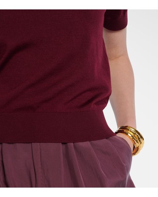 Materiale: 35% lana, 35% cashmere, 30% seta. Trattamento: lavaggio a secco. Made in Italy. Colore del designer: Bordeaux. Collo: scollo rotondo. Polsini: a coste. Orlo: a coste. Lana, Cashmere, Seta.