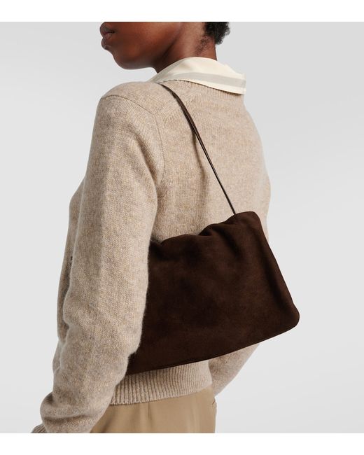 Material: lamb leather (suede). Lining: leather. Made in Italy. Designer color name: Mocha Ans. Top handle. Closure: zipped top. Internal details: internal zipped pocket. Includes: dust bag. Leather.