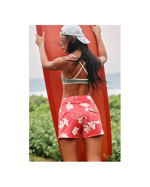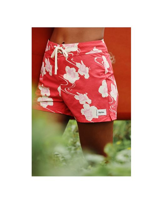 Vintage-inspired pattern and sporty silhouette make these board shorts a must-have for your next surf session. **Fit:** Relaxed fit; mid-rise; mid-thigh length **Features:** Fabrication features recycled material; ideal for water sports; four-way stretch; drawstring adjustable waistband; snap closure back pocket **Why We Rhythm Board Short at Free People in Poppy, Size: Small