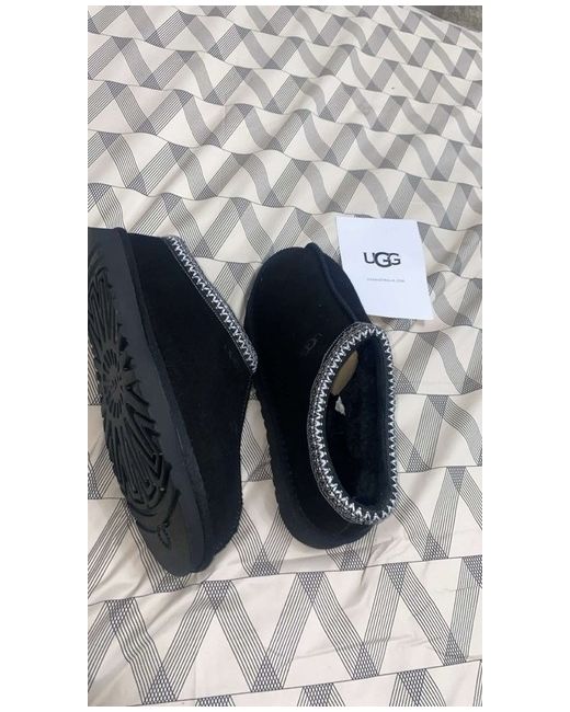 The UGG Tasman size 8 women's slip-on boot is a stylish and versatile choice for casual occasions during the winter season. Featuring a round toe shape, low heel height, standard shoe width, and made from suede upper material with a rubber outsole, these black boots are both comfortable and practical. The iconic UGG Australia logo accent adds a touch of luxury to this timeless and classic design. Made for women in mind, these boots are a must-have addition to any wardrobe, perfect for adding a touch of sophistication to any outfit.