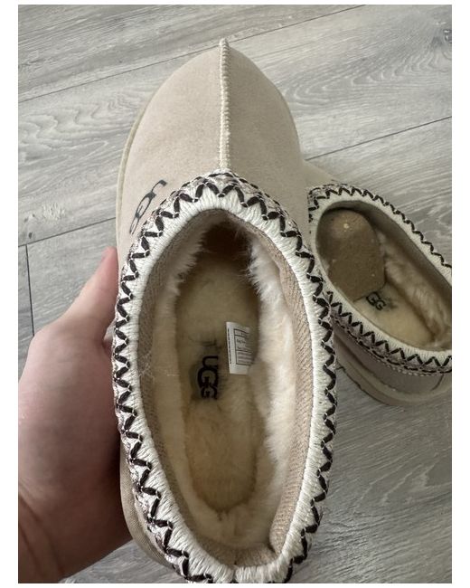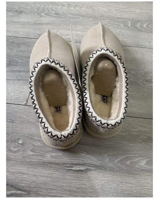The Ugg Tasman Light Beige Low Platform slipper in UK size 5 is a stylish and comfortable choice for women. With a round toe shape and slip-on closure, these slippers are perfect for casual occasions in the winter season. Made with suede upper material and featuring the signature UGG Australia logo accent, these slippers provide both fashion and comfort. The low platform style and rubber outsole make them practical for everyday wear, while the standard shoe width ensures a comfortable fit for all. Perfect for lounging around the house or running quick errands.