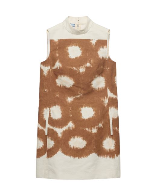 Circle print A-line fit Unlined garment Funnel neck Back metallic zipper closure Sleeveless Inseam pockets Straight hem 100% Cotton Imported. Lsd Rtw - Prada Rtw > Prada > Saks Fifth Avenue. Prada. Color: Brown. Size: 2.