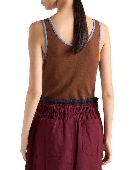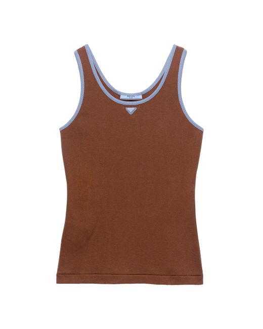 Slim-fit silhouette Ribbed knit scoop neck Enameled metal triangle logo 100% Cotton Imported. Lsd Rtw - Prada Rtw > Prada > Saks Fifth Avenue. Prada. Color: Brown. Size: 0.