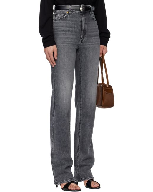 Hand-finished stretch denim jeans. · Fading and whiskering throughout · High-rise · Straight-leg · Belt loops · Five-pocket styling · Zip fly Supplier color: Warwick