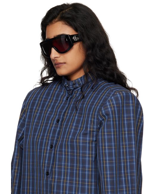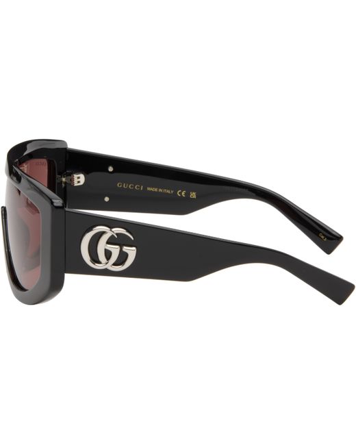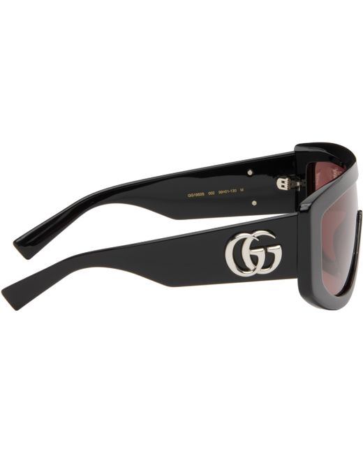 Shield-style acetate-frame sunglasses. · Red lens · 100% UVA/UVB protection · Logo etched at lens · Integrated nose pads · Logo hardware at temples · Includes pouch · Size: 130 Supplier color: Black