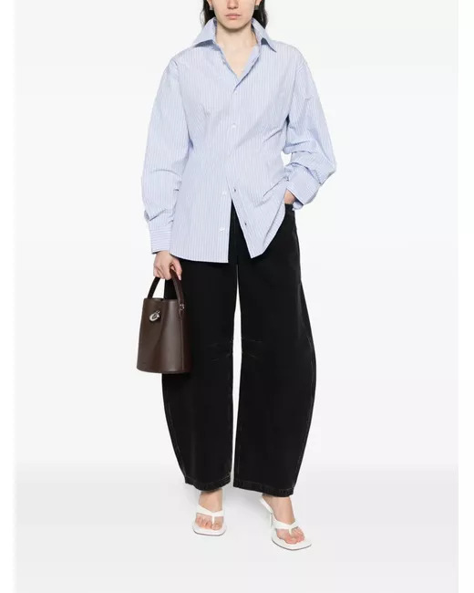 blu motivo a righe taschino sul petto chiusura a bottoni maniche lunghe orli con abbottonatura