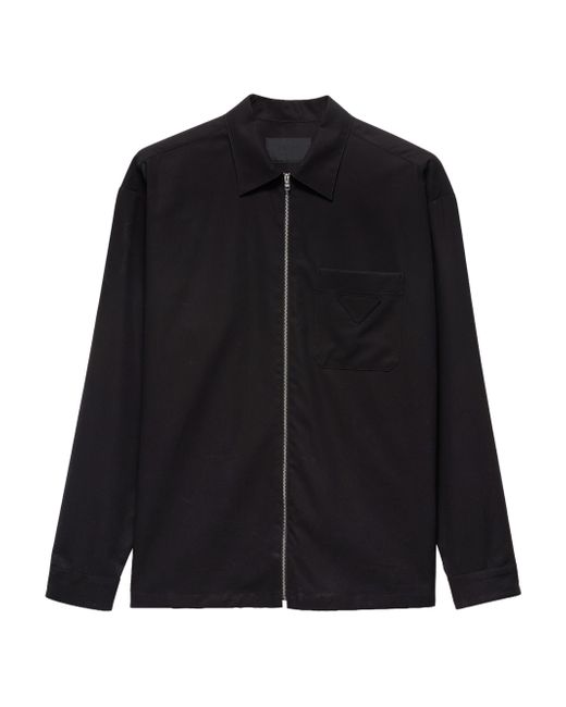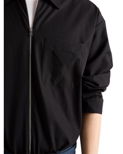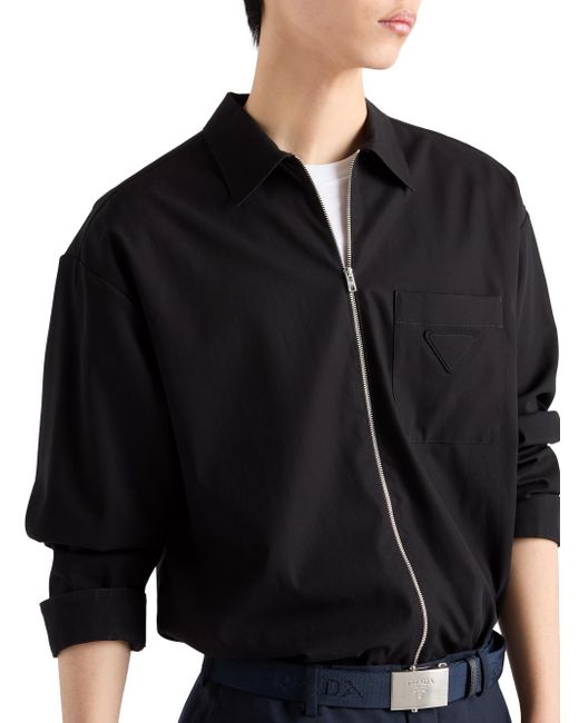 Loose fit Classic collar Classic breast pocket Straight hem Cuffs with mother-of-pearl button Zipper closure Fabric triangle logo on the front 100% Cotton - 100% Trochus Niloticus Imported. Lsd Rtw - Prada Rtw > Prada > Saks Fifth Avenue. Prada. Color: Black. Size: Small.