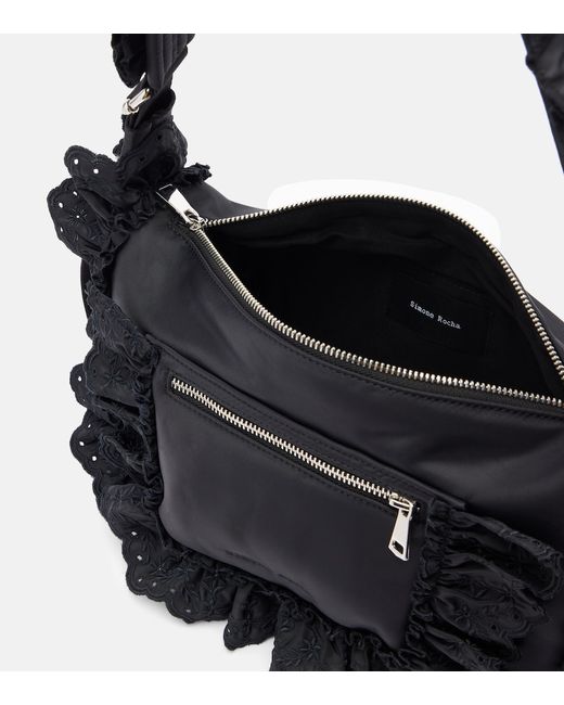 Material: fabric. Lining: fabric. Made in China. Designer color name: Black. Hardware color: silver. Details: faux pearls. Closure: zipped top. Zipped front pocket. Adjustable shoulder strap. Internal details: slot pocket. Includes: dust bag.