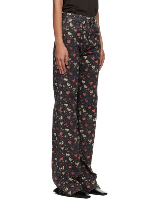 Stretch denim jeans. · Fading and printed graphic pattern throughout · Flared · High-rise · Belt loops · Five-pocket styling · Zip fly · Logo patch at back waistband Supplier color: Black valentine