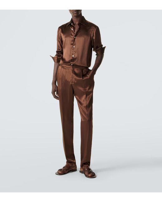 Materiale: 100% seta. Trattamento: lavaggio in lavatrice a 30°. Made in Italy. Colore del designer: Brown. Collo: classico (a punta). Chiusura: abbottonatura frontale. Polsini: abbottonato. Seta.