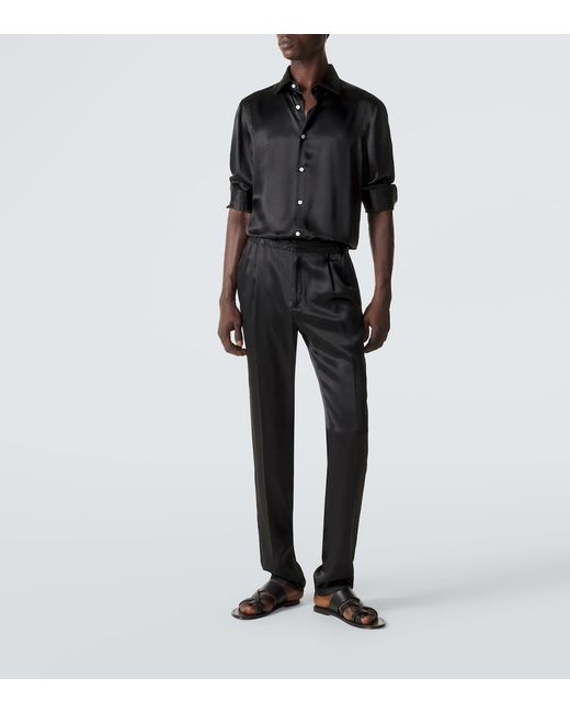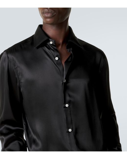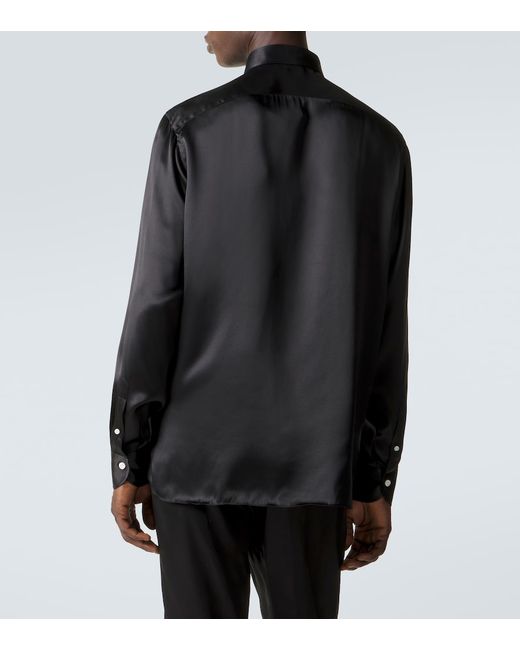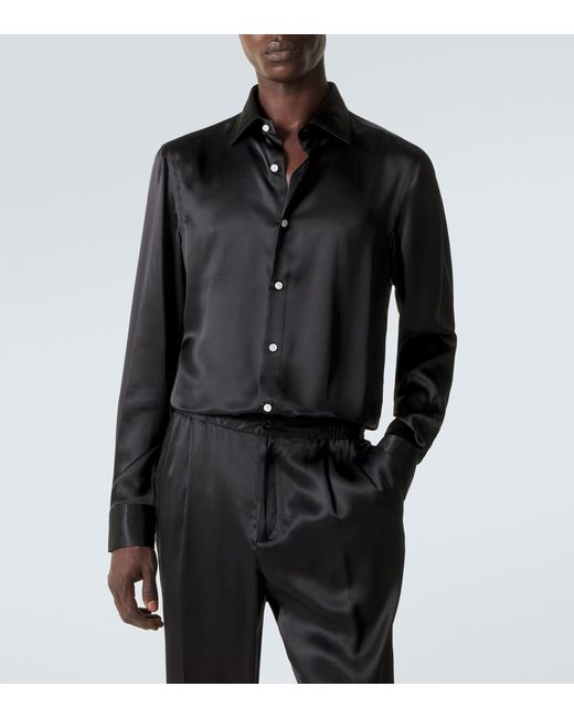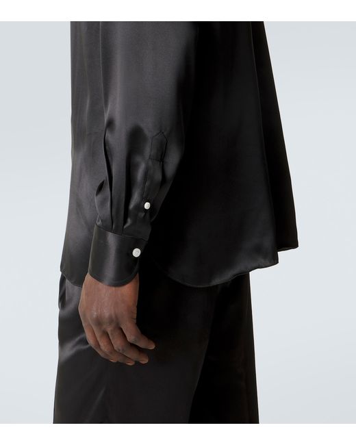 Materiale: 100% seta. Trattamento: lavaggio in lavatrice a 40°. Made in Italy. Colore del designer: Nero. Collo: classico (a punta). Chiusura: abbottonatura frontale. Polsini: abbottonato. Seta.