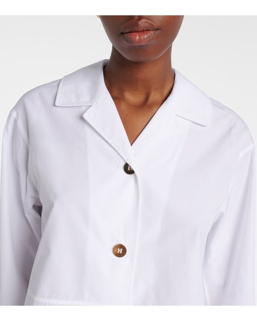 Materiale: 100% cotone. Trattamento: lavaggio in lavatrice a 30°. Made in Romania. Colore del designer: Bianco Ottico. Collo: cubano / bowling. Chiusura: abbottonatura frontale. Polsini: con un bottone. Aperture laterali. Spacco. Cotone.